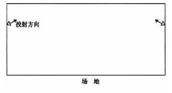 (2) 兩側(cè)布置 燈具布置在場(chǎng)地兩側(cè),光束非垂直于場(chǎng)地平面的布置方式。
