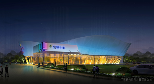 營銷中心作為樓盤的形象工程和接待客戶的地方,夜間照明設計,用燈光使之成為城市視覺中心,以震撼的視覺效果塑造視覺印象,提升售樓中心的品牌。