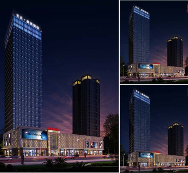 整體燈光以簡潔大氣為主,裙樓商業(yè)以表現(xiàn)熱鬧而雅致的氛圍為主,用小壁燈和內(nèi)透搭配表達(dá),主樓立面用LED點(diǎn)光展現(xiàn),點(diǎn)光安裝于室內(nèi),見光不見燈:建筑頂部微微透出的燈光搭配著LED發(fā)光字,與航空障礙燈共同闡述遠(yuǎn)視的效果,整體燈光輕靈飄逸,簡潔優(yōu)雅。