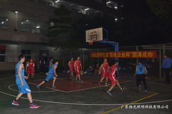 12月2日,莞城“企業(yè)杯”籃球賽于晚上七時半在巨漢燈飾球場拉開帷幕。包括揚光照明在內(nèi)一共8支企業(yè)球隊參與。當晚為揚光照明與茂瑞電子比賽。